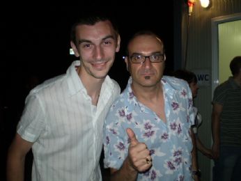 Stringo la mano al mio mito, colui che inneggio mentre molti credono che sia poggippollini il meglio...e inizio a parlare..Gli chiedo se potevamo fare una foto assieme e lui mi risponde di si e mentre ci avviamo verso un posto più illuminato, gli chiedo: