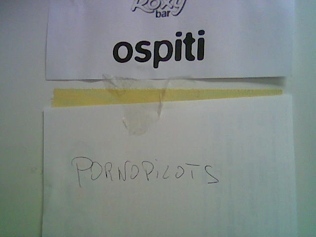 Questa sera quindi PORNOPILOTSLINK live al ROXY BAR. I concerti iniziano alle 22.30 massimo, noi non sappiamo a che ora suoniamo noi, ma penso per le 23.30 più o meno. Il tutto sarà trasmesso in diretta da RADIO BRUNO, che trasmette anche in internet.