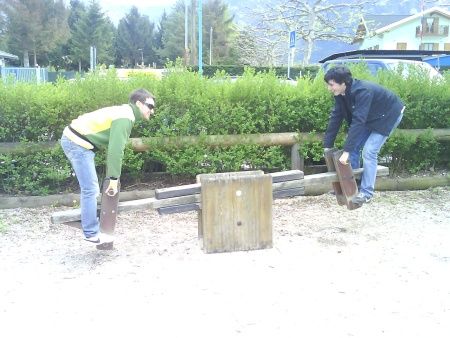 Non andata a buon fine l’idea del giro in motoscafo "Tobinho", in preda alla disperazione ha trascinato "E.T.84" nel parco giochi dei bimbi