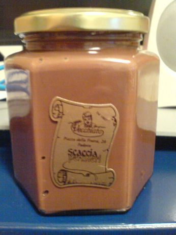 e guardate cosa mi ha regalato un’amica per averla aiutata con inglese!!! un vaso di cioccolata artigianale!! con le nocciole dentro!!! drogaaaa!! ahhh