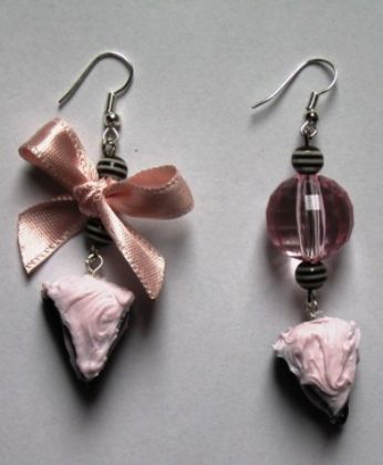Dolcetti in fimo con perle lucide e opache zigrinate nere e con fiocco in orgnza nero...