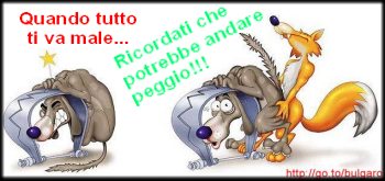 Oggi è proprio una giornata di m... Non bastavano i problemi in ufficio, no.. Arrivo a casa e decido di andare a messa. Non ci vado praticamente mai ma oggi forse era il caso di andarci. Arrivo puntuale alle 18.30 e trovo tutte le porte chiuse. Bene...a messa non ci vado manco a Natale o Pasqua quindi mi sembra giusto che il 4 agosto ci siano i portoni chiusi... Vabbeh, arrivo a casa e decido di mettermi in vasca per riposarmi un po.. MAGARI!! Oggi niente acqua calda..ma ti pare???