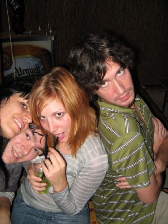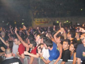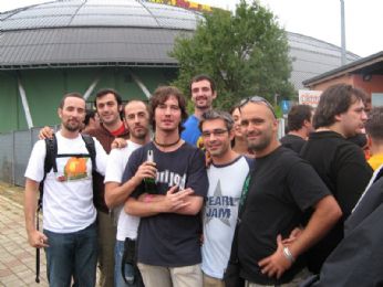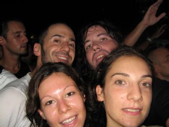 Formazione di ieri: Momo, Nicola, Luca, Luca (dido). Due file indietro, a sorpresa, Samantha, pochi posti più in là il romano che era attaccato a noi a Bologna, ancora più in là il mio bassista, che ieri ha festeggiato il suo compleanno anche all’Arena, "er fonico", Marco, e l’immancabile Dido.