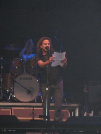 Eddie tutta la sera legge messaggi già tradotti in italiano. Ma sono sentiti, e si capisce bene quando introduce la struggente Comeback portando i saluti della vedova di Johnny Ramone, genio della cui morte era appena trascorso il secondo anniversario. Ed il testo di "comeback" sembra fatto apposta per questo momento.