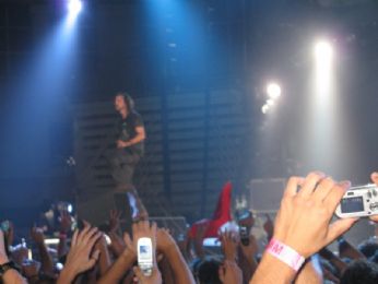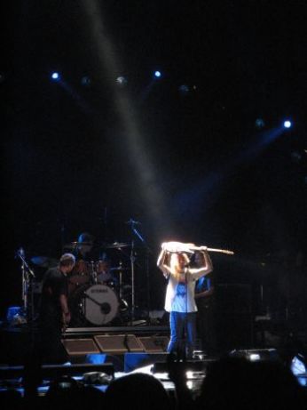Inizio che aspettavo da sempre: Release. E la pioggia si confonde tra le urla e le lacrime dei presenti. La carica arriva poi con una versione di Given to fly un po’meno convincente di quella di Bologna di due sere fa. Sembrava una canzone conscia del suo importante ruolo: quello di introdurre l’attesissima Corduroy. Naturale l’arrivo di World Wide Suicide con tutta l’Arena a battere le mani a tempo. "Qualcuno" ha provato a ballare. Salvandosi dal cadere grazie alla spalla del vicino di posto irlandese e del dj Bosello. Arriva nuovamente Do the evolution, seguita da Severed Hand.