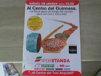 KE FIGATA...SABATO28/10/06 POMERIGGIO SI STABILIRà ALL’IPERSTANDA DI SAN BIAGIO DI CALLALTA(TV)IL NUOVO GUINNESS MONDIALE PER LA PIZZA PIU LUNGA...OLTRE 150METRI DI PIZZA GRATIS E FIUMI DI BIRRA GUINNESS E TUTTO QUESTO GRATIS VI ASPETTO POI NN DITE KE NN DO DRITTE...AH OVVIAMENTE IO PARTECIPERò AL GUINNESS UN BACIONE VI ASPETTO!!!!CIAOOOOOOOOOOOO