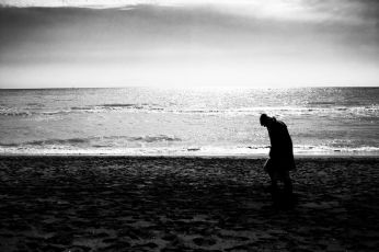 Con la mano che trema flebile e le lacrime miste al sudore che scendono dal viso... li nel ricordo di un mare immobile, su quella spiaggia dove mi regalasti il tuo sorriso disegnato in una foto in bianco e nero, un ricordo pallido sotto una bianca luna dagosto, dove si può confondere il falso con il vero... e mentre i pensieri viaggiano lontani dal loro posto di un treno sola andata per il passato, fino al punto di non ritorno per averti già dimenticato; ma è una bugia instabile, fatta di un cuore in vetro fragile che ti chiede di scappare allorizzonte mentre i fantasmi già ti chiamano e tu tasciughi il sudore sulla fronte per non confondere le lacrime.