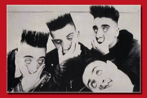 Lei: top che abbiamo comprato assieme, cprispalle a rigoni rosso e nero, calze carne con cucitura dietro, tacchi, insomma bella da paura. Io maglia tiky surf di vince ray, jeans con risvolto, creepers e teddy in tinta biaca e nera comprati a Forlì pure quelli e cinta prezziosissima che mi ha regalato Eva per nachele della luky 13.. brillantina ,pettine da tasca bara insomma perfetti ! Arriviamo alla gabbia, ancora vuota , e trasmettono video degli Stray Catz ce li gustiamo per bene poi inizia il concerto ... poca gente la voce della cantante favolosa finche cantava ... quando ringraziava il pubblico sembrava la voce di un travesto