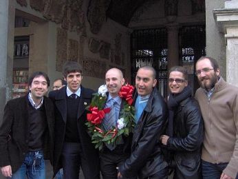 ![]() Take the time to make some sense Of what you want to say And cast your words away upon the waves Sail them home with acquiesce On a ship of hope today And as they land upon the shore Tell them not to fear no more Say it loud and sing it proud Today... And then dance if you want to dance Please brother take a chance You know they’re gonna go Which way they wanna go All we know is that we don’t know -- How it’s gonna be Please brother let it be Life on the other hand won’t let us understand We’re all part of the masterplan Say it loud and sing it proud Today... I’m not saying right is wrong It’s up to us to make The best of all the things that come our way Coz everything that’s been has past The answer’s in the looking glass There’s four and twenty million doors On life’s endless corridor Say it loud and sing it proud And they... Will dance if they want to dance Please brother take a chance You know they’re gonna go Which way they wanna go All we know is that we don’t know -- How it’s gonna be Please brother let it be Life on the other hand won’t let you understand Why we’re all part of the masterplan mercoledì 29 novembre 2006 - ore 00:48 Pensieri Dalla Mensa Della Big Falcon Sto guardando un Gallagher a caso in concerto acustico a Parigi, in differita ormai, a ciclo continuo... Che roba!! Me lo sto quasi godendo, in miniatura, a scatti… Ma non pensiamo che domani è a Milano… è una balla sicuramente. Ma anche no. Parlando di video, oggi il buono e incredibile Zambrotta (ex-Marazzina) me ne ha inviato uno da nostalgici di robottoni giapponesi… Al grido di “A morte i Boazani!!!” Pulsante rosso… Contatto! Oggi estrema simpatia dei colleghi per un piccolo cambio di look: uno mi ha detto che sembravo un beccamorto, un altro un Beatles, un’altra che parevo uno studente di un college inglese, l’ultimo, dirigente questo, che ho la frangia da “putea”… E ridevano… Io non ho più niente da ridere in ditta. Allenamento… il quarto di fila…ormai sto tornando ad essere uno sportivo serio… il fiato lo dimentico sempre a casa però… Tornato a casa oggi vedo una busta per me con l’inconfondibile stemma alfistico del Biscione… Pensavo ad un richiamo… e invece mi hanno mandato la tessera da alfista!! Tassera n°2, la prima è stata assegnata di diritto a Paolo Bitta. Con tanto di accesso al sito, ricchi premi e cotillon… ![]() Voglio vincere un corso di guida sicura con Andrea De Adamich, giusto per fare due gincane in pista!!! Vroooommmm!!! E non contento delle scarpe strette prese su internet ultimamente e ancora in mio possesso ma che gradirei piazzare quanto prima… oggi ci sono ricascato, altro paio, altra marca, simili… Speriamo che non sia necessario aprireire un negozio virtuale di calzature… Angolo pubblicità, doverosa in questo caso, Treviso sarà la destinazione di venerdì prossimo… Ve ne parlerà meglio il maestro Tiziano. ![]() Spero saremo in tanti a venir giù da Liverpool… o da Manchester… E vista l’ora, anzi, sarei in ritardo, vado a farmi uno spuntino di mezzanotte… Caffelatte, uhm… non adesso… sarebbe già il terzo oggi… qualcosina di salato…alla faccia della digestione e della salubrità. Salumità per tutti. "Voltes V No Uta - Horie Mitsuko & Koorogi ’73” LEGGI I COMMENTI (14) - PERMALINK lunedì 27 novembre 2006 - ore 18:42 Chi Arriva Nella Nebbia? Lunedì di già, tra foschia e cielo grigio si sentono meno gli effetti negativi di un nuovo inizio della settimana... Soprattutto dopo le brutte e soffocanti sensazioni del weekend... E causa nebbia niente trasferta pontelongana per una delle ultime sagre conosciute ma una pizza nel sicuramente meno vivo centro di Padova...tra nebbia, strade deserte e qualche idioma esclusivamente di provenienza slava, sembrava di essere in chissà quale luogo da romanzo dell’orrore, nella mia testa poteva quasi essere una Londra d’altri tempi, impaurita dagli efferati delitti di uno squartatore di nome Jack... Anche le statue di Prato della Valle sembravano lì immobili tutte intente a fissarci, attendendo un nostro piccolo attimo di distrazione per assalirci alle spalle... Devo smetterla di ordinare pizze troppo pesanti se poi mi fanno questi effetti... La tavolata non era completa purtroppo, eravamo in dispari e avrei voluto sdoppiarmi... ![]() E tra un morso e una sorsata di birra rossa nascono ipotesi di nuove attività lavorative, nuove società virtuali che probabilmente non nasceranno per la discordia sui nomi... LABA enterprise? MALA LUBA limited?? FRANAR corporation??? Ci manca il nome serio per il salto di Qualità. Arrivano chiamate da amici in cerca di consigli. Tanto sanno (e fanno) già quello che devono fare... Arrivano messaggi da vecchi allenatori...ma le voci che qualcuno ha messo in giro sul mio conto non centrano nulla stavolta... Arrivano email in ufficio da amici che han fatto di Londra la loro nuova casa e che purtroppo si fan sentire sempre più di rado... l’ultima volta Berlusconi era ancora capo del governo… Arrivano segnali di gioia da colleghi un attimo schierati a sinistra per le disgrazie di Panto e (sempre lui) del Silvio... Arrivano segnalazioni di Noel su radio Deejay ma morire se posso mai sentire la radio in questo manicomio... Arrivano però anche i link per vedere almeno le song live fatte alla radio... grazie Dinasan!! Arrivano ancora pacchi di roba dismessa da dare ai poveri, ho il bagagliaio pieno... Arrivano inviti a feste di compleanno in trattorie assolutamente gradite e già note... Arrivano inviti a cene dell’ufficio a cui non so che rispondere... Arrivano email che per una cosa o per l’altra parlano di uccelli... cosa voglio di più dalla vita? Un tucano! ![]() Arrivano consigli e pareri sul mondo delle donne solo che si addicono meglio a me ma grazie lo stesso... Arrivano a casa vecchi ticket da pagare... peccato che ho la ricevuta nel 730 dell’anno scorso... vogliono farmi pagare due volt