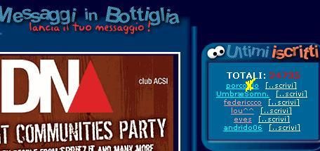 ![]() Take the time to make some sense Of what you want to say And cast your words away upon the waves Sail them home with acquiesce On a ship of hope today And as they land upon the shore Tell them not to fear no more Say it loud and sing it proud Today... And then dance if you want to dance Please brother take a chance You know they’re gonna go Which way they wanna go All we know is that we don’t know -- How it’s gonna be Please brother let it be Life on the other hand won’t let us understand We’re all part of the masterplan Say it loud and sing it proud Today... I’m not saying right is wrong It’s up to us to make The best of all the things that come our way Coz everything that’s been has past The answer’s in the looking glass There’s four and twenty million doors On life’s endless corridor Say it loud and sing it proud And they... Will dance if they want to dance Please brother take a chance You know they’re gonna go Which way they wanna go All we know is that we don’t know -- How it’s gonna be Please brother let it be Life on the other hand won’t let you understand Why we’re all part of the masterplan martedì 14 febbraio 2006 - ore 12:51 Valentine Che dire che non sia già stato detto su San Valentino? Che questanno è di Martedì? Lultimo "festeggiato" era quello di due anni fa ormai, un regalo, per tentare di recuperare in extremis qualcosa che poi si sarebbe rotto definitivamente e in malomodo... Quello più comico? Nel 1996, quando mi sono presentato tutto grassoccio e sudato, assolutamente impacciato e ridicolo, in sella alla bici, a casa della ragazza che mi piaceva in quegli anni, ero andato fiducioso a cercare di incassare il fatidico "sì" dopo che un paio di mesi prima le avevo detto che mi piaceva e le avevo chiesto di stare con me... E venuta fuori sua madre per dirmi che era malata... Fataità! E come rideva la signora sotto i baffi. Il regalo lho riportato una settimana dopo... lei era guarita, ha accettato il regalo, un braccialetto, mi ha dato il due di picche e mi son rifatto il tragitto in bici ma al contrario...con le orecchie basse e la coda in mezzo alle gambe. Qualche anno dopo, una sera che si usciva con amici comuni, allunga un braccio verso di me e mi chiede "Hai visto? " Aveva al polso il famoso braccialetto. Ma non è successo niente. Dopo tre notti di guerra in Amsterdam Medaglie al petto il soldato se ne va Bagno le polveri cè un richiamo che Viene dal basso del Chet Baker Hotel E caleidoscopico Non mi fermo più Vedo mille popoli quaggiù E stato allora che ho intercettato lei “Hey italiano qui Lady Valentine” Al Tokio Decadence lultimo tango e vai Meriti quello che non hai fatto mai Salto nelle pagine dellambiguità E lultimo vortice : si fa! Valentine Valentine Resto qui mia dolce Valentine Non lo sai Valentine La tua pelle come lerba sai Mi sconvolge, mi prende di più Valentine Valentine Resta qui regina Valentine Non lo sai Valentine La tua pelle è un prato bianco sai E mi avvolge, mi stringe più su Mi sconvolge, mi prende di più... Valentine... LEGGI I COMMENTI (14) - PERMALINK lunedì 13 febbraio 2006 - ore 10:44 Considerazioni del Lunedì # La macchina è in officina, cambio serrature, tagliando e revisione. Dopo prometto che la farò lavare. # La Juve ha più culo che sentimento # Il Banale al Sabato è incasinato come la tangenziale di Mestre il primo weekend di Agosto, però non c’è brutta gente, anche se questa gente non si ricorda più chi sono. # Asolo è un gran bel posticino, la fortuna di andarci una domenica con le bancarelle degli antiquari e la sfortuna di non esserci fermati in quell’osteria... E trovare l’amico Piero al belvedere della Rocca, dopo 11 anni che non ci vedevamo, è una soddisfazione! # In compenso credo non ascolterò più il Greatest Hits 2 dei Queen. # L’ Ada a Camisano... ha perso tutta la mia stima. # Il bar centrale a Veggiano... ha guadagnato tutta la mia stima # Il Verbena è sempre la mia pizzeria preferita. Non ce n’è! # Mancato il giro dalla Lilli della domenica... # Sky ormai ce l’ha anche il peggiore bar di Caracas. # Sono preoccupato di chi ha in affidamento i miei capitali. # Tre dita della Tania sono meno di metà di tre dita di Rena. Per fortuna. # Chuck Norris: non cè bisogno di commenti # La patatina tira. LEGGI I COMMENTI (9) - PERMALINK sabato 11 febbraio 2006 - ore 16:12 Libera Nos a Malo ...nel senso che tra poco si va a Malo a giocare contro la squadra locale... ![]() Penso sarà una partita dura, contro i Maledetti. Quanti adepti della cricca di Chuck Norris ieri sera al Dna... altro che spillette con l’Union Jack... e pensavo ai CLub11. Gente un po’ diversa dal solito, dj un po’ diversi dal solito, ma stesso grande show. LEGGI I COMMENTI (5) - PERMALINK venerdì 10 febbraio 2006 - ore 13:57 Venerdì Che sia di pioggia o di sole, vive di una luce sua. Ti fa dimenticare di avere sonno, di avere dolori dappertutto dopo calcetti e allenamenti vari, te ne fa sbattere altamente delle targhe alterne, e attenua un po il senso di colpa per la figura da chiodi fatta con la stella più luminosa del (Manchester) City Hall... Mi piace guardarlo sul calendario in ufficio, di ogni riga settimanale è lultimo di 5 numeri in nero, prima degli altri due, colorati e un po boriosi. Può essere santo, di vigilia, di digiuno e astinenza, è il giorno giusto per andare a mangiare pesce con la scusa che la religione cattolica ci ha tramandato questa abitudine alimentare... Può arrivare il 13 o il 17, a seconda delle tradizioni si vorebbe che portasse sfiga...ma anche no... E il giorno in cui si organizzano cene, coi colleghi di lavoro, coi compagni di squadra per esempio, o con il club di ikebana... E di solito la notte da poker, da vizi e stravizi. E la serata giusta per andare ad ascoltare musica ,o suonarla, per i più fortunati, che sia vicino o distante... E la serata per andare a ballare la musica giusta, senza trovarsi al Sabato in pista con i teena