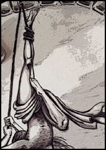 At tragic heights she hangs from the sky..