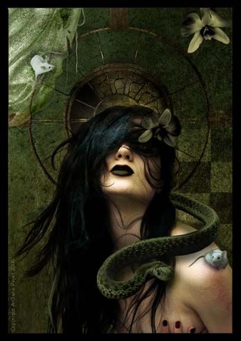 Tant’è vero che oggi, nel mio solito cazzeggiare (manuale di arte moderna aperto sulla stessa pagina da almeno tre ore), ho pensato bene di impiegare cinque minuti buoni per realizzare uno dei miei abituali “capolavori” trash! Non perché io abbia qualche fine estetico, ma per il semplice fatto che mi diverto troppo a giocare con photoshop, e che l’unico soggetto a cui posso applicarmi senza rischiare denunce sono io medesima!
