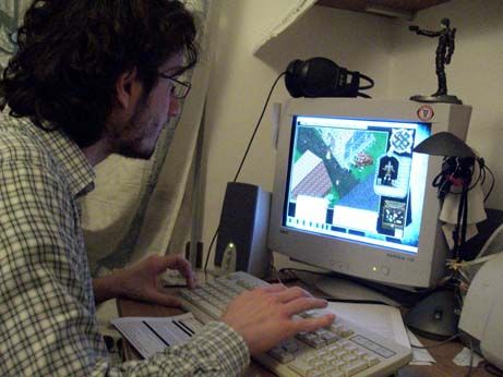 Tipico esemplare della specie nerd, con camicia inguardabile e dannatamente demodé, occhialini, barba incolta, e totalmente assorbito dallo schermo del Pc. Cosa capibilissima, dato che a Ultima Online non si può più resistere, se la si prova anche solo una volta.