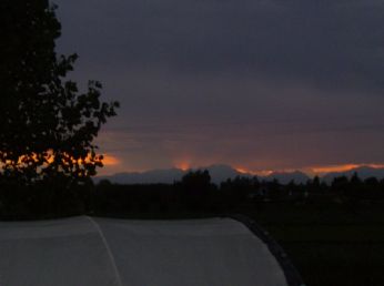E questo è il tramonto di lunedì sera..sole come oro incandescente che cola.. Qualcosa di incredibile che le foto non trasmettono fino infondo.. Ero salita sul tetto..faceva freddo..e sono rimastata incantata ad osservare i profili delle Prealpi stagliarsi contro il tramonto..