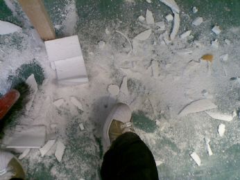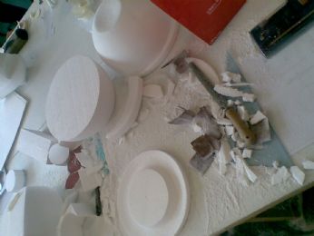 I miei pantaloni imbrattati di polveri di polistirlo scartavetrato...