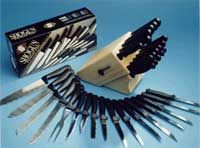 I coltelli SHOGUN si differenziano da tutti gli altri per la loro speciale AFFILATURA BILATERALE, grazie alla quale non è necessario affilarli nuovamente. I manici sono di propilene e la lama di acciaio inossidabile è di OTTIMA QUALITA’. Grazie a questa composizione possono essere lavati anche in lavastoviglie. INDISTRUTTIBILI, manico leggero. Colore: Nero. Peso: kg.1.2 Il set è composto da 17 pezzi.