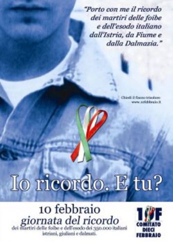 La ‘Giornata del Ricordo’ viene celebrata dopo l’approvazione del Parlamento di un anno fa.Ci sono voluti 60 anni perche’ l’Italia ricordasse una tragedia a lungo dimenticata per ragioni politiche. Una tragedia che si chiama ’foibe’, ovvero il massacro di migliaia di cittadini italiani, dalla fine del 1943 al 1945, ad opera dei partigiani di Tito, trucidati in molti casi solo perche’ italiani in una zona che la Jugoslavia gia’ rivendicava entro i suoi confini (se le rivendicazioni titine fossero state tutte accolte, il confine italiano sarebbe retrocesso fino al fiume Tagliamento, inglobando Trieste, Gorizia e Udine nello Stato slavo).
