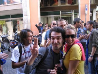 cmq arrivo a Treviso alle 10.30 se non sbaglio e subito un bianco e panino con porchetta......abbiamo comprato il bicchiere e il corredo per la manifestazione che ogni anno sottrae qualcosa come lo stend degli alpini ( che ogni anni di regalava pasti caldi in cambio di centesimi di euro) lo stend dei formaggi tipici che assieme ad un talloncino posto sulliscrizione della cartina ti regalava un piatto di formaggi...sapete dopo un pò che bevi devi anche compensare con il mangiare..stà di fatto che la giornata è trascorsa a ridere e a scherzare io per fortuna questa volta ho bevuto veramente poco...si la mia maglietta potrebbe dire il contrario ma in realtà è tutta colpa di quel frocio di a Daniele che mi ha versato di proposito il vino sporcandomi tutto...sto stronzo!