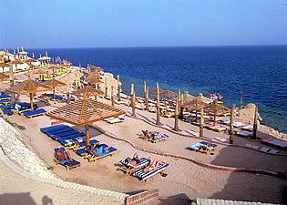 Località Shark’s Bay (e già sto nome non promette nulla di buono) L’hotel, situato a Sharks Bay, a 2 km dall’aeroporto internazionale di Sharm El Sheikh e a 16 km da Naama Bay, gode di una splendida posizione panoramica con vista sul Golfo di Aqaba e dell’isola di Tiran. Ideale per quanti vogliano immergersi in acque cristalline e godere dello spettacolo di una splendida barriera corallina (yeah...), concedersi momenti di relax ed approfittare del coinvolgente programma di animazione (gli animatori dovranno stare lontani da me). Per la cena sono aperti, oltre al ristorante principale con show cooking, anche il ristorante italiano Mamma Mia (evvai!!! ... classico italiano ). Consumo illimitato di bevande analcoliche, acqua, tè, caffè sia ai pasti, sia nei bar del resort. Per il consumo degli alcolici di produzione nazionale occorre corrispondere in loco il supplemento indicato in tabella (e te pareva...). Possibilità di praticare risveglio muscolare, acquagym, pallavolo, stretching, aerobica, merengue, tennis tavolo, bocce, calcio (boia! di corsa...). Spiaggia: l’hotel sorge direttamente sul mare e dispone di una spiaggia privata che si sviluppa a terrazze su diversi livelli, con una splendida barriera corallina e pontile per l’accesso al mare.