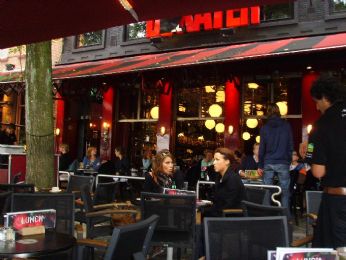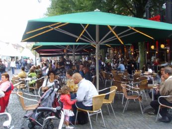Domenica facciamo un giro in bici e decido di far vedere al mio Amore lo stadio del FC Twente... Alla sera giocavano contro il PCV Eindhoven.. non abbiamo trovato biglietti (sold out fino a 2008..eh..pazienzaaa) MA al ritorno abbiamo trovato i giocatori del FC Twente. Il centro della Città, si sono 43 pub intorno alla chiesa..