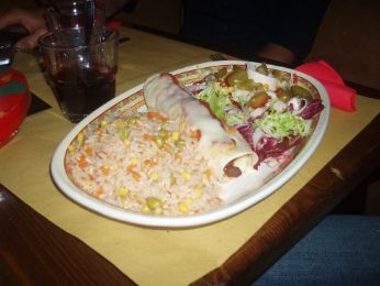 Menu:antipasto di patatine con salsine strane ma buone, burritos y chili(se si scrive cosi..) e sangria a volonta!!!