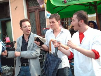 so desfà!  Sono arrivata alle 14.30 alla piazza...voci di "corrdoio" presagivano pioggia.. e pioggia fu dalle 15 alle 16, ma finalmente il SOLEEEEEE!!!!  Dai ke si comincia.. wow ke figo fare foto col sole!!!  Grandi i personaggi presenti: Millebirre, MrD, ALBEDEAMENTE, Bocio, Nickyts, Sandy, Livio.. yeah!