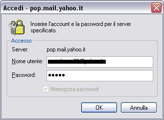 Ma appena cerco di fare altrettanto con Yahoo.it (POP3 =