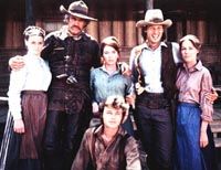 alla conquista del west, il telefilm, per tv. la puntata parlava di sta cinese che emigrando in america veniva violentata (sulla nave dal capitano della nave che gestiva sti viaggi) e il padre di lei che voleva uccidere il figlio quando sarebbe nato. lei viene aiutata dalla famiglia protagonista (vedi foto) a partorire etc. alla fine si sposa col suo promesso sposo che arriva dalla cina (sfigatissimo) e non uccidono il bocchia (mega sfiga di lui che: per trovare la tipa fa un contratto di 6 anni di lavoro a mezza paga magari in miniera; deve mantenerla e in più deve mantenere anche il figlio non suo, con tutta probabilità dopo un paio danni la tipa lo mollerà per un altro). ho riso un sacco. scena comica: alla fine la nuova famigliola decide di andare a vivere in montana (la vicenda si svolge in oregon mi pare) perchè "volevano una vita sana per il figlio". come se allepoca ci fosse tanto inquinamento... ma lol.