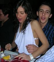mercoledì 20 dicembre 2006 - ore 12:20 Mi sono svegliata presto per accompagnare Stefy al suo esame... Che ridere era troppo agitata... e alla fine ha preso 27 (non so esattamente in che materia, una roba sul razzismo)!!!![]() Mentre lei era dentro sono andata a fare la spesa ![]() ![]() e ho preparato 2 torte, una da portare la sera e una da mangiare a casina. ![]() Poi mi ha raggiunto, abbiamo pranzato insieme e siamo andate a Bologna CHE BELLA CHE E’ TUTTA ILLUMINATA!!! ![]() Ci siamo fatte un giro immenso, entravamo in OGNI negozio, ci provavamo TUTTO... Che ridere!!! Da Rinascimento c’era un vestito che... bho... sembrava un costume da albero di Natale... ![]() Ma chi si può vestire così??? ![]() Cmq... non potevamo non mettercelo!!! ![]() Mi sono anche ricomprata il cerchietto che uno stronzetto a caso mi aveva rubato tempo fa... ![]() Tornate a casa di corsa che era tardissimo, ci siamo salutate perchè oggi lei torna a Modica ![]() ![]() ![]() Alle 9.30 sono andata a Fotografia per la cena di Natale. Che poi non è proprio una cena... Abbimo visto la presentazione di Aris sul 2006 (un medley di tutte le foto + belle dei soci), 5 diapositive dei primi 10 classificati nei concorsini mensili, con relativa premiazione e infine abbiamo mangiato tutto quello che ognuno aveva portato... ![]() Torte, panettoni, pandori, crostate, pasticcini, budini, cioccolatini... ![]() Mamma mia quanto ho mangiato!!!!!!!!!!!!! Verso mezzanotte me ne sono andata a pancia piena e felice ![]() (ho anche ricevuto un regalino da Antonio (il + giovane del circolo)... ![]() Che carino!!! Cmq appena fuori ho visto la macchina di Andrea... ![]() Dentro c’erano lui, Niko e la Bea. Si sono fermati e mi hanno chiesto di andare con loro... ![]() Che dovevo fare?? Ho accettato... E così abbiamo passato una serata noi 4... Non so che dire... Sono stata bene, come sempre quando c’è lui. Non posso nascondere che ogni tanto mi scordavo di respirare... ![]() però... è stato bello! Mi ha anche offerto un bicchiere di Champagne!!! ![]() CHE BUONO!!!! Non l’avevo mai bevuto! E’ troppo frizzante!!! ![]() E poi le fragoline dentro.. ![]() Abbiamo chiacchierato ancora, serenamente, ci siamo raccontati un po’ di novità. Sinceramente non so capire quello che provo, o forse non voglio neanche. So solo che ieri sono stata bene e questo mi basta! Cerchiamo di vivere un giorno alla volta senza rimuginare troppo! Tanto non serve a niente! ...e la vita continua anche senza di noi che siamo lontano ormai da tutte quelle situazioni che ci univano da tutte quelle piccole emozioni che bastavano... LEGGI I COMMENTI (8) - PERMALINK martedì 19 dicembre 2006 - ore 11:52 In sti giorni non ho avuto un secondo!!! Dunque, sabato sera siamo andati al ![]() 4 COMPLEANNI: Forci, Thomas, Silvia e Marika. Abbiamo cenato lì, non c’ero mai stata e vi dirò, abbiamo pure mangiato bene (tranne il riso coi piselli… veramente insapore!!!)! ![]() Qualche fotina: I soliti noti Qui l’alcol cominciava a farsi sentire… ![]() Le 5 torte (il nostro regalo per tutti i festeggiati) ![]() E qui, sempre le torte, però finite sulla mia faccia/spalle/capelli/vestiti… ![]() Dopo la bellissima cena invece la serata è precipitata… ![]() Mi è scesa di brutto (non ho idea del perché) e mi sono ritrovata fuori a parlare con Toro e Forci… Questa non la definirei proprio una conversazione memorabile… Sono saltate fuori un po’ di cose, legate alla mia difficoltà di creare legami… Non ti puoi aspettare niente se non dai niente, ormai è un anno che esci con noi, e altre cose personali sul genere… Il fatto che ho difficoltà a legare profondamente con le persone è vero, non posso dar loro torto, ma non si può neanche pretendere di avere un certo tipo di rapporto con tutti, altrimenti non sarebbe + “speciale”! Quindi bo, direi che la ragione sta nel mezzo, come sempre, forse loro 2 non si sentono “parte integrante della mia vita”, ma ci sono altre persone a cui devo molto, a cui TENGO MOLTO e con cui sto cercando di costruire qualcosa… ![]() Per non parlare del freddo che faceva fuori…. mi sono pure ammalata.... ![]() Domenica l’ho passata sui libri di Analisi, ![]() tranne la sera che abbiamo preso una pizza dalla Stefy e abbiamo guardato:![]() Anche se il nome è decisamente da film porno il genere è totalmente diverso! Ha una bella trama, fa riflettere, anche se la fine è un po’ troppo smielata . E dire che l’avevano scelto 2 maschi!!!Lunedì mattina sempre a studiare, e di pomeriggio ESAME! ![]() Nonostante tutto il tempo che ci ho dedicato non ne sapevo per niente… Le mie lacune cominciano a farsi sentire… Speravo di riuscire a copiare qualcosa invece zero assoluto, in + ho sbagliato l’unico esercizio che sapevo fare bene… ![]() Il risultato ufficiale lo dicono stasera, ma dato che ieri sono rimasta a vedere la correzione posso già tranquillamente affermare di essere stata bocciata… ![]() E così ho mandato in fumo i meravigliosi 15 punti su 17 che avevo preso nel primo parziale… E a gennaio dovrò dare (sempre che Economia l’abbia passato), Analisi, Geometria e Informatica… con gli orali 5 esami…!!! Non ce la farò MAI!!!! ![]() Ieri sera cmq, per distrarmi un po’ (e anche perché tanto non avrei dovuto studiare per l’orale…), sono andata al cinema con Anna e Daria, abbiamo visto![]() Gran bel film davvero!!! LEGGI I COMMENTI (4) - PERMALINK sabato 16 dicembre 2006 - ore 11:28 Mi aspetta un’altra giornata di studio, che pacco... ![]() Ieri sera cmq siamo andati al Per una volta che non c’era ressa la musica ha fatto cagare... ![]() Abbiamo sballucchiato un po’, bevuto e poi siamo andati via. ![]() Ovviamente lì c’era Andrea... Abbiamo fatto 2 chiacchiere, mi ha portato da bere che lui "c’ha le bazze" ( ), tutto tranquillo.Il calcio? La barba? I capelli? ...Documentari sulla Corsica.. ![]() Dopo che fate? Tutto tranquillo, tutto normale. Ora... non mi vorrei sbilanciare