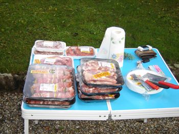 Sui tavoli 2 buste contenenti decine di spiedini e costine più svariati metri di salsiccia attendono i Nostri commensali. Ma i loro stomaci non si spaventano di fronte a niente.