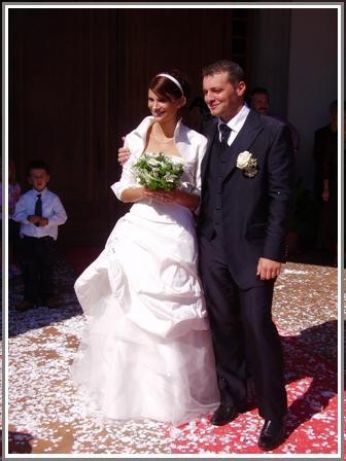 [Sono molto orgogliosa di questa foto perchè l’ho ritoccata cancellando un tizio che sbucava dalla penombra dietro gli sposi. L’ho eliminato con una mano di nero su paint, e mi sento come se avessi trovato finalmente lo scopo della mia vita: ritoccare foto con paint. Beissimo.]