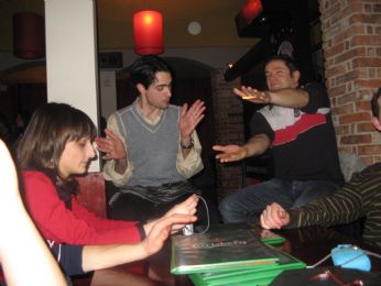 giovedì 20 marzo 2008 - ore 23:52 Test Icole *Dal tuo punto di vista: Autovalutazione* 1) Sei simpatica? secondo voi?? 2) Sei bella, carina o brutta? ci manca mostruosa 3) Sei permalosa? ... ![]() 4) Sei testarda? tanto 5) Sei estroversa o introversa? mmm... divento sempre più introversa 6) Sei chiacchierona? non sarai una donna allora *Scuola* 1) Il voto più alto che hai preso: 20/20 2) Il voto più basso che hai preso: 0/20 3) Ti hanno mai sbattuto fuori dalla classe? sì 4) Sei mai stata in presidenza? No 5) Sei mai stato sospeso? io??? no!!6) Hai mai salato (bigiato, marinato..) la scuola? cosa significa??? 7) Materia preferita? musica e disegno 8) Materia Odiata? francese 9) Prof Simpatico? François Simon 10) Prof odiato? Randolet, Naudeau, Testard *Amore* 1) Sei single o fidanzata? SINGLE 2) Se sei single: per scelta tua o degli altri? DEGLI ALTRI OVVIAMENTE!! 3) Come si chiama il tuo fidanzato o il ragazzo che ti piace? presentatemelo prima ![]() 4) Quanti anni ha? vedere risposta precedente 5) Lo conosci? vedere risposta precedente 6) Ci esci da sola? vedere risposta precedente 7) Hai il suo numero di telefono? vedere risposta precedente 8) Sai dove abita? vedere risposta precedente 9) Siete più che amici? vedere risposta precedente 10) Credi nell’amore nato via internet? lamore può nascere ovunque 11) Se si ti è mai capitato o lo stai vivendo adesso? NO *Amicizia* 1) Hai molti amici? sono fortunata ad questo punto di vista 2) La tua migliore amica? ... 3) Il tuo migliore amico? ... 4) Fai parte di una compagnia? diverse companie 5) Li vedi spesso? ogni tanto 6) Posto di ritrovo? ovunque ci si puo divertire 7) Li conosci da molto? alcuni no altri sì 8) Sei mai stata tradita in amicizia? SI 9) Se si hai perdonato? no, non perdono la cattiveria *Vita quotidiana* 1) A che ora ti alzi? in funzione dellora del lavoro 2) A che ora pranzi? mai alla stessa ora 3) Qual è il tuo piatto preferito? quelli preparati dalla mamma 4) E quello che odi? le schiffezze che si trovano ovunque 5) Guardi la tv? no, non ho più di tanto il tempo 6) Ti piacciono i cartoni? ovvio, sono una bimba grande ma bimba! 7) Ultimo film che hai visto al cinema? lezioni di felicità 8) Ultimo cartone che hai visto? Les mystérieuses cités dor 9) Hai Sky? NO 10) Hai il digitale terrestre? NO 11) Mediaset o Rai? nessuno dei due fanno schiffo 12) Favorevole all’aborto (se si specificare i casi)? sì 13) Hai un animale? no 14) Se si cosa? ... 15) Come si chiama? ... 16) Quanti anni ha? ... 17) Se no cosa vorresti avere? un cagnolino o un gatto *Sport* 1) Pratichi qualche sport? in teoria, sì in pratica proprio poco 2) Sport preferito? rugby 3) Squadra preferita? Toulouse (rugby) 4) Tifosa sfegatata o normale? normale 5) Squadra odiata? Fairplay 6) Sei mai stata allo stadio o altro luogo sportivo? certo, per essere stata sportiva per anni 7) Sai giocare a calcio? no 8) Sai giocare a pallavolo? un po ma niente di che *Videogiochi* 1) Hai la play 1? no 2) Hai la play 2? no 3) Hai il gameboy? no 4) Hai giochi nel computer? sì 5) Ti piacciono i giochi di ruolo? mah dipende con chi gli fai, in generale, alcuni sì *Vestiti* 1) Jeans o tute? prendo quello che mi capita 2) Jeans attillati o larghi? pantaloni normali 3) Maglie larghe o strette? larghe 4) Elegante o sportiva? ELEGANTE 5) Scarpe da ginnastica o tacchi? entrambi 6) Che scarpe hai? di tutto 7) Marca preferita: nessuna 8) Hai cicatrici? si 9) Hai braccialetti? si 10) Se si quanti? 7, si chiama "une semaine" 11) Hai collane? si 12) Se si quante? boh... 13) Porti l’orologio? no 14) Perizoma o tanga? ne luno ne laltro *Musica* 1) Genere preferito: rock, hard-rock-metal 2) Cantante o gruppo preferito: guarda gli album sul blog 3) Canzone preferita: la lista è lunga 4) Canzone che ascolti spesso oggi: quello che capita 5) Canzone che stai ascoltando ora: nessuna *Viaggiare* 1) Viaggio più bello della tua vita: norvegia 2) Viaggio che sogni di fare: polinesia, india, egitto, martinica e caraibi 3) Sei mai stata all’Estero? sono una viaggiatrice nata 4) Regione italiana più bella: toscana 5) Nazione Europea più bella: norvegia 6) Continente preferito: europeo 7) Mare o montagna? entrambi *Cibo* 1) Mangi molto? dipende cosa si intende per molto 2) Mangi lenta o veloce? veloce...e non va bene 3) Mangi tante merendine? no, evito 4) Ti piace la cioccolata? tantissimo, extra dark 5) Ti piace la nutella? troppo dolce 6) Gusti del gelato preferiti: liquirizia, menta, cioccolato extra dark 7) Pizza o focaccia? pizza 8) Dolce preferito: tutto tranne quelli al coco *Domande varie* 1) Sei figlio unico? no siamo in 4 2) Leggi molte riviste? GEO 3) Stazione radiofonica preferita: radio americana 4) Ti piacciono I Diddl? si 5) Profumo preferito: jadore dior 6) Hai un calendario? chi non ne ha... 7) Com’è il tuo pigiama? orsacchioti 8) Che cellulare hai? samsung...non mi ricordo il modello... 9) Tim, Vodafone, Wind, Blu, 3? vodafon 10) Meglio un giorno da leoni o cento da pecora? ma? 11) Porti cappelli? ![]() 12) Hai un balcone in camera? no 13) Amici più importanti conosciuti su internet: gaghi, vicky_80 14) Ultimo messaggio ricevuto: da una persona poco imporante 15) Ultimo squillo ricevuto: nessuno, non mi piaciono 16) Manda un bacio a qualcuno: Bisous à tous ceux que jaime 17) Da chi vorresti ricevere un bacio? da tutti quelli che me lo vogliono dare 18) Fai un saluto: COMMENTA (0 commenti presenti) - PERMALINK domenica 16 marzo 2008 - ore 11:30 AUGURI DI BUON COMPLEANNO!!!!!!! Un evento di cui non potevo non fare un post sul mio blog... il nostro GAB nazionale detto SUPERVISOR compie gli anni!!!! AUGURI CARISSIMO!!!! ecco qualche momento della serata... Il nostro Festeggiato!!! Vivi e Paolo![]() Lucca detto Pulè, Anna e Gab![]() Dario e Biankaneve Nicola e Pulè che illustrano nuove tecniche di ballo ![]() E la nostra Kikina!!![]() Adesso le foto Buffe ecco il simbolo della nostra serata LEGGI I COMMENTI (8) - PERMALINK mercoledì 12 marzo 2008 - ore 11: