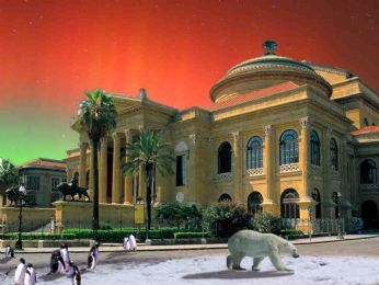 E chi non crede a quello che dico guardi la foto: Aurora boreale, orsi polari e pinguini davanti il Teatro Massimo!