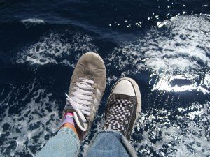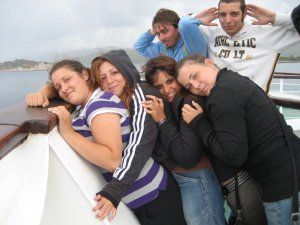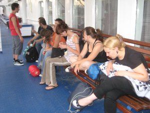 viaggio d’andata mare a forza sette, sembrava un film splatter!vomito dovunque gente che spantassava dappertutto!i sopravvissuti e ke tenevano la testa ai deboli di stomaco: io ary bibbia ville e paolo ke però s’è messo a dormire.