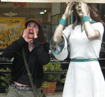inizia così il brucione costruttivo. c imbuchiamo in un bar a fare colazione e a ripassarci la parte d teatro. fatto ciò usciamo cn lintenzione d andare in un qualke parchetto a bighellonare ma un profumo d pane appena sfornato c avvolge e, cm nei cartoni, catturati da qst aroma irresistibile, lo seguiamo finke nn arriviamo alla fonte... ore 9:14... siamo in un parchetto a mangiare la pizza... si zizza x un po e poi, stufe d ipotizzare quali possano essere i pensieri d una bambina d 5 anni ke va al parco col nonno (c avete mai pensato? i bambini si ke si fanno una bella vita,... la loro unica preoccupazione è "riuscirà il nonno a mandarmi più su senza rompersi lanca?" quando sn sullaltalena, oppure "riuscirò a lavorarmi bene i miei x avere la barbie malibu x il compleanno??" ke bella vita...) decidiamo d andare in centro. la due buzzurre si sono dedicate x tutto il tempo alla caccia alla sigaretta ma in giro cerano solo donne in cinta... sfigate!! poi siamo andate alla promode e li m sn rifatta il guardaroba