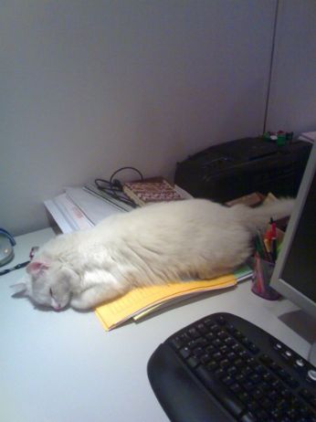 GATTO (è il suo nome) ha deciso che sta bene sulla mia scrivania...