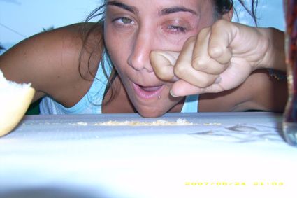 Dicono che chi tira di bamba vince la fame....io e la Giorgi stavamo impazzendo di fame, la paeja non arrivava e abbimo cosi deciso di farci una riga di pane...ah aha ah