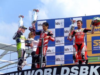 Il podio di gara 2: Haga, Toseland, Bayliss