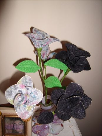 Fiori creati con calze collant..