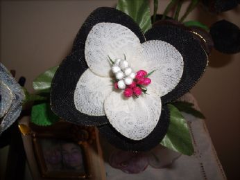 E continua la mia lavorazione con calze collant e fiorellini..maremma solo è difficile trovare ora che fa freddo delle calze collant 20 denari quindi calze molto fine e colorate..dovrò aspettare x forza la primavera..uff...e intanto tra rose nere e rose bianche vadao avanti..chisa se con un paio di calze color carne con la coloreria italiana riusciro a colorarle?