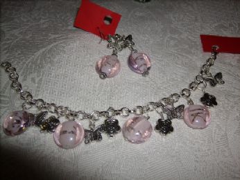 BRACCIALE VETRO E FARFALLE IN METALLO