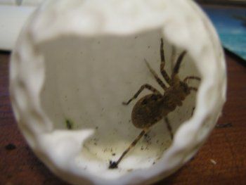 e... last but not least... dopo aver combattuto a mani nude, una estenuante lotta durata 4 ore e mezza, pieno di ferite e contusioni, sono riuscito a catturare un ragno e a metterlo in cattività. si chiama Jack. Adesso vive in una pallina di plastica rotta. se volete contattarlo, lasciate dei commenti, io riferirò. eccovelo un po’ demoralizzato per non essere riuscito ad uccidermi: