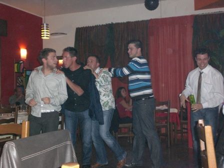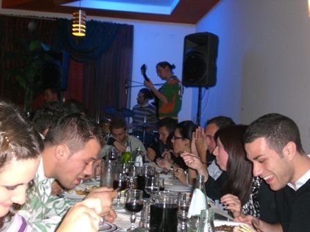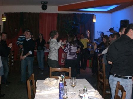 la tavolata...e come sfondo il gruppo che suonava il brasilero (il cantante era brasiliano, i musicisti di TREVISSSSSSO!! no go paroe)