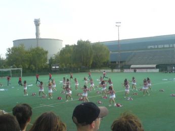 lunedì 2 giugno 2008 - ore 13:43 Festa di Medicina 2008 - i miei pensieri. Fine. Fine degli allenamenti, fine dellaspettativa, fine della sensazione di far parte di qualcosa di bello e speciale... Fine del "cus o garage della Vale?"... Fine del mac post allenamento... Fine del "prossima volta proviamo le posizioni" Fine delle risate e dei porchi per i passi impossibili... Con somma tristezza saluto forever i ponpon biancorossi due anni fa bene o male sapevo che avrei potuto rifarlo... inoltre le cose non erano andate proprio liscissime quindi cmq ero tornata a casa un po scornata.Questanno invece la preparazione dello show è stata già di per sè unemozione... grazie alla splendida Chiaretta che mi ha sopportata nei miei continui tentativi di collaborare... fin dalla scelta delle musiche a casa sua, continuando con le divise (che a quanto ho potuto intuire sono piaciute ) e infine i dettagli, tipo quei malefici tubetti dei coriandoli e ai teli (scritti dalla mia manina malferma alle 12.30 del giorno stesso della festa... )... insomma mi sono sentita parte attiva dellorganizzazione e quindi un po "mamma" apprensiva e orgogliosa Arrivando al succo della questione... sabato mattina comincia con una pessssima notizia: defezione di un ragazzo ponpon ma grazie alla geniale idea della Valentina e alla disponibilità del buon Pietrino riusciamo a salvare capra e cavoli. Prova generale sul campo grande... spugnoso e rimbalzino... sistemiamo la questione teli e organizziamo la mandria scatenata dei maschietti... poi dobbiamo lasciare il campo per larrivo delle ponpon B. A quel punto Irene ed io, accompagnate dal buon Federico, in una folle corsa torniamo a casa, ci docciamo e raggiungiamo la parrucchiera (credete forse che i miei capelli sarebbero stati a posto se mi fossi arrangiata? naaaa... ) dove ci concediamo un paio dore di relax e scongiuri; dopodichè a casa mia a prepararci: calze a rete effetto nudo, scarpa da ginnastica bianca rigorosamente col calzino, gonnellina bianca, maglia a righette biancorosse, pon pon, Cd con la musica... non manca nulla, possiamo andare!!Arriviamo al Cus e raggiungiamo il campo: problema, manca limpianto audio, sia qui che in fiera, visto che il service ha svampato signò lAlice donna dai mille poteri gira come una trottola impazzita per la città in cerca della soluzione, e la trova giusto in tempo per lintervallo: pari e dispari, si esibisce prima il B, del quale non abbiamo una diapositiva.Poi tocca a noi. Il campo sembra enorme, più di prima, più che mai. Per fortuna il tifo calorosissimo ci conforta e ci incoraggia ![]() Questo è il mio gruppetto alla partenza, cioè le condannate alla prima fila da sinistra, la bionda è lIlaria, poi io, la Chiara, laltra Chiara, lAngela e la Giorgia... notate la Chiara voltata a controllare con occhio attento il momento del via...Un momento dello show... io sarei la seconda formichina da sinistra... si notino anche gli uomini in rosso che nel frattempo, finito lo spogliarello chirurgico, si davano da fare a intrattenere e distrarre il pubblico ![]() ![]() Ecco il passo a due... gli ometti trascinati in campo fanno egregiamente il loro dovere! Ci sono anche io... la testa mora sotto la chiazza bianca (un camice) a sinistra... ![]() Ci avviamo alla conclusione... ![]() ...celebrata dai nostri uomini con una doccia di spumante!!! Io immediatamente dopo lesibizione, ancora sconvolta (notasi la scollatura da me definita "panoramica") E qui esulto in posa... senza accorgermi che le mie colleghe intanto correvano a festeggiare i giocatori dallaltra parte del campo, vabè ![]() Spezzone del balletto (gentilmente definita "scena lesbo" ) fornito dal buon Michael84...Io sono quella che per poco non sbaglia a prendere i ponpon altrui.. non si vede ma eravamo messe ad "A"...Il secondo tempo della partita ci regala emozioni contrastanti: due gol, il capitano che si infortuna , lespulsione del numero 19 e a seguire dellallenatore , due rigori dubbi, un gol contro... una sofferenza... fortunatamente la partita finisce sul 2 a 1 per noi, ma che fatica! festeggiamo i nostri uomini biancorossi, e poi pronti per le premiazioni: il Real Canale A si aggiudica la coppa per il quinto (mi pare?) anno di seguito, e come da tradizione le ponpon dei vincitori cedono la vittoria a quelle degli sconfitti. Non proprio volontariamente, ma cest la vie però posso dire? PON PON A VINCITRICI MORALI ![]() Un po festeggiando un po intristite ce ne andiamo. In sella al destriero del mio ometto approdo a casa, lavaggi e cena in velocità, e poi prendiamo il largo verso la seconda parte della festa, raccogliendo sul percorso la Giù (che sennò piange!) e lIrene (smemorina!). Parcheggiamo confortevole ed entriamo.. subito comincia la ridda dei saluti, millemilioni di volti noti, dal liceo, a spritz.it, ecc ecc.. andiamo a salutare gli amici, quasi tutti a fare servizio dietro il bancone, assaliti dalla folla urlante e gironzoliamo...incontri... ![]() ![]() e poi qualcuno chiama le pon pon A sul palco... io purtroppo lo sento in ritardo, ma alla fine giungo... ![]() ![]() ![]() ![]() ![]() ![]() ![]() E qui tentativo di radunare un po di noi giù dal palco.. ![]() ![]() ![]() che onore! io con Alice e Marco.. gli organizzatori (nonchè miei amici...cè il trucco.. )Lultima foto della serata mi ritrae nel casquè di fine balletto con il mio ragazzo ponpon nonchè socio e amico prezioso Tex ![]() ![]() E basta... stanca morta con i piedi a pezzi e le gambe pure torniamo a casa, il mio tato per farmi addormentare ha dovuto farmi i massaggini x quanto avevo male ![]() Che dire... io questa festa lho vissuta "da dentro" e quindi il mio parere è parzialissimo... ho detto mille cose e avrei voluto dirne altre mille, ma questo 31 maggio 2008 resterà a lungo nella mia memoria, insieme a tutte le persone che ne hanno fatto parte... in primis le cheer A, tutte dalla prima allultima, da quelle che già conoscevo alle nuove conoscenze, quelle con cui ho socializzat