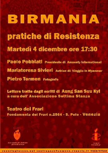 venerdì 21 dicembre 2007 - ore 17:52 Auguri semiseri A tutti i miei amici, inizia la saga degli auguri di Natale! Che ne dite di questo, per cominciare? Lets Elf! Cliccate...ne vale la pena LEGGI I COMMENTI (3) - PERMALINK mercoledì 19 dicembre 2007 - ore 15:53 Do you Boldù? Ma quanto è divertente lavorare al Boldù? Con la Betta e gli altri ragazzi della Sumo ci divertiamo ogni pomeriggio/sera da morire ad allestire, cucinare, preparare e poi ascoltare gli interessantissimi talking e vedere i film che ci propongono...in soli tre giorni ho fatto la designer, receptionist, cuoca, banconiera, relatrice!!! Ci si diverte a creare i tramezzini e poi mangiali, si spritza con chiunque (famosissimo il mio baby spritz di ieri..portato nel bicchierino del caffè..sembrava sciroppo della tosse per i vecchi ahahahaha ) e poi, ovviamente, si impara, ci si conosce e ci si rivede!!!Magari il Servizio Civile fosse sempre cosiì ![]() Peccato che domani il Festival dei diritti umani si chiuda, ma nonostante le pochissime presenze esterne, io sono davvero contenta di avervi preso parte perchè sono stata con persone favolose e come esperienza mi ha dato tantissimo ![]() State sintonizzati per le prossime novità di fine settimana LEGGI I COMMENTI (2) - PERMALINK lunedì 17 dicembre 2007 - ore 16:17 Evviva!!!! Eccomi tornata dopo quasi una settimana senza pc a casa, un aggiornamento veloce prima di scappare a fare turni pomeridiani al Boldù! Sabato pomeriggio sono andata a pattinare sul ghiaccio con la mia amica, e mi sono divertita davvero tantissimo tra gag e incapacità varie (lultima volta che ho messo i pattini ai piedi sono caduta rovinosamente)! Neanche una caduta (ma tanto male alle gambe ora), nonostante un mocciosetto malefico che ci aveva puntate perchè ci vedeva imbranate continuasse a dire "Adesso cadete!!!". Gli ho detto "Taci tu che avrai la metà dei miei anni se è tanto, abbi rispetto!!!" ![]() A seguire, megacioccolata calda e mega chiacchierata tra donne. Non poteva proprio andare meglio ![]() Grazie anche ai miei carissimi Morfeus e Carlitos per la serata di sabato, i 25 euro di cioccolata sono buonissimi !!!!Sono davvero molto felice in questo periodo ![]() COMMENTA (0 commenti presenti) - PERMALINK venerdì 14 dicembre 2007 - ore 10:59 Mucche e Convegni Rieccomi apparire dopo qualche giorno di assenza! Niente internet a casa, mi tocca vampirare (ahahaha) quello dellufficio Mercoledì ho avuto la mia prima conferenza, ho parlato insieme a Stefano davanti a circa..5 persone? Beh, poteva andare peggio..ma anche meglio! Detesto la società civile italiana, e vedo molte analogie col mondo della musica. Vaneggio? Mah! Detesto anche gli studenti del master MIM, antipatici e troppo presupponenti (anche se alcuni sono carucci, gli italiani abbassano la media della simpatia) ![]() In compenso, però, mi sono innamorata della mucca di Riccardo, che rivedo sempre con piacere (lui & la mucca): grazie della serata di martedì e speriamo di vederci a Capodanno (con te & la mucca) ![]() LEGGI I COMMENTI (2) - PERMALINK sabato 8 dicembre 2007 - ore 15:12 Iniziano i festeggiamenti! Ci siamo!!!! Da oggi restyling natalizio del blog e inizio dei vari festeggiamenti tra cene, spritz e intrattenimenti vari! Quest’anno mi piacerebbe fare una bicchierata di Natale con voi affezionati del mio blog, e spero davvero sia possibile! Bentornato anche a Markodude, assente per un po, con cui sono stata mercoledì a vedere 1408 (finalmente), e con cui soprattutto mi sono cimentata nel difficile videogioco delle corse di cavalli!!! ![]() Pronti ad addobbare i vostri alberi e festeggiare? Keep Rotten..ovviamente! ![]() COMMENTA (0 commenti presenti) - PERMALINK lunedì 3 dicembre 2007 - ore 15:00 Pillole di saggezza Invece di piangermi addosso, ho parlato con Mirko e abbiamo stilato una top di mini-pillole di saggezza in campo di affari di cuore: - MAI e dico mai regalare (o pensare di farlo) cioccolatini a forma di cuore alla persona cara; - MAI, e ancora una volta mai, regalare cellulari alla suddetta persona; - terzo e più importante, il CHOJIN ne sa!!!!! LEGGI I COMMENTI (2) - PERMALINK venerdì 30 novembre 2007 - ore 16:04 Per non dimenticare mai: monito musicale a me stessa Agathodaimon- Feelings Endless fear, darkness holds me I dont know it I am wrong or right Where is my world that I loved so before? All has gone, bleeding, dying You dont know what you have done to me Left me hollow inside, feel like dirt I wanna slam you, just wanna kill you All I want to see is you, lying down in pain Forever I will hate you Is all that I can say Leaving the ghost of you behind Tears of sorrow I will never spill again Scratching your face out of my mind Are you really sure what you wanna be now? Its just a fake to me, yes Fuck yourself and die a painful death I dont need you to love me anymore Get away and leave my life alone One step away of twisting your neck The crown of the human race Fuck you, is it really you Loving you, killing you, loving you... COMMENTA (0 commenti presenti) - PERMALINK mercoledì 28 novembre 2007 - ore 20:18 Conferenza sulla Birmania Birmania: pratiche di Resistenza Martedì 4 dicembre ore 17:30 saranno presenti: Paolo Pobbiati, presidente di Amnesty International Mariateresa Sivieri, autrice di: Viaggio in Myanmar Pietro Tormen, fotografo Letture tratte dagli scritti di Aung San Suu Kyi a cura dellAssociazione Settima Stanza Teatro dei Frari S.Polo - Venezia Mappa info: www.veneziagiovane.net, centropace@comune.venezia.it tel. 041 2747645 LEGGI I COMMENTI (1) - PERMALINK lunedì 26 novembre 2007 - ore 19:51 Beowulf, leroe che grugnisce! Ieri sera spettacolo! Al Cinecity a vedere La leggenda di Beowulf in 3D...davvero molto realistico, pareva di esserci...e le uccisioni e gli squartamenti avevano un sapore squisito ![]() Peccato solo la trama, un pochino deludente per quanto non fosse la solita storia delleroe megafigo che non sbaglia mai! Consigliato ![]() LEGGI I COMMENTI (3) - PERMALIN