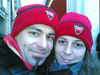 Guardate che coppietta...hi..a bologna alla festa Ducati!!troppo bello,c era un tappeto rosso in piazza..tutti amici!!hi..