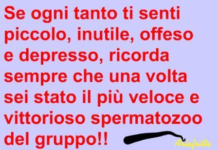 giovedì 27 settembre 2007 - ore 11:16 Messaggio SMS x chi fosse interessato,fino alle 13 il "Venezia" si allenerà presso i campi sportivi di Noventa Padovana.. Ps:obbligatorio un saluto a Vivipinky! LEGGI I COMMENTI (4) - PERMALINK martedì 25 settembre 2007 - ore 00:14 URGENTEEEEEE Qlk1 cortesemente mi spiega come scaricare l ultima versione di MSN??? LEGGI I COMMENTI (3) - PERMALINK sabato 22 settembre 2007 - ore 14:01 TEST DELLA PERSONALITA’ “LOONEY TUNES" Ti sei mai chiesto a quale cartone animato assomigli? Un equipe di investigatori si é riunita ed ha analizzato le personalità dei personaggi dei cartoni animati. IO SONO TITTY: "Sei delicatamente bello, e tutti ti amano. Sei il miglior amico che nessuno vuole perdere. Non provochi mai dolore agli altri e raramente feriscono i tuoi sentimenti. La vita é una passeggiata. Sei grazioso e calmo per la maggior parte del tuo tempo. Tieniti alla larga dai traditori e resterai libero dalle preoccupazioni." LEGGI I COMMENTI (5) - PERMALINK sabato 22 settembre 2007 - ore 13:33 Umore di oggi... ![]() LEGGI I COMMENTI (3) - PERMALINK mercoledì 19 settembre 2007 - ore 01:05 Lui Dottore, io Infermiera.. ![]() PS: IERA ORA! LEGGI I COMMENTI (3) - PERMALINK venerdì 14 settembre 2007 - ore 14:02 Messaggio SMS Non sono sparita!!ma il mio pc si collega alla velocità di 12Kb.. N.G.P. LEGGI I COMMENTI (2) - PERMALINK domenica 9 settembre 2007 - ore 03:37