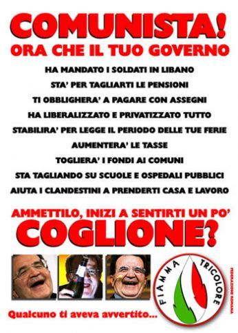 venerdì 5 gennaio 2007 - ore 17:20 Capodannu... Anche se in ritardo mi sono accorco che alla mattina del 1° gennaio avevo fatto due foto a bologna al Ca.Cu.Bo. (ottimo impianto e gran divertimento...) verso le 10:52...eccole ![]() Grande disorientamento quando mi sono accorto che il party era vicinissimo allaeroporto... ![]() LEGGI I COMMENTI (15) - PERMALINK venerdì 1 dicembre 2006 - ore 19:38 Ieri sera la mammina si è fermata a prendere delle pizze... Fin qui tutto apposto... Io ordinai una vegetariana - scelta alquanto strana per i miei gusti - visto che avevo già mangiato pizza al mezzogiorno e quindi ho pensato: "almeno la prendo con verdura tanto per variare un po’...". Siccome le donne difficilmente fanno ragionamenti corretti, ha portato a casa le pizze con i finestrini serrati per non prendere freddo. Allora: mi sono congelato tenendo aperto ieri sera andando al cinema, e fin li ok anke perché ho fumato in macchina e quindi un po’ di aerazione ci stà. Mi sono congelando al ritorno perché puzzava ancora. Mi sono congelato stamattina andando a lezione, dopo essere entrato ancora mezzo assonnato in mezzo ad un campo di verdure marcie e nauseabonde. E infine mi sono congelato al ritorno. Deusbifidusinfabulascanterinasinsulsas. Beh ho fatto anke quest’altro bel ragionamento: post pessimo, lo so, ma....non me ne frega un beneamato cazzo... LEGGI I COMMENTI (15) - PERMALINK venerdì 1 dicembre 2006 - ore 03:08 Domandina La domanda che mi sono appena posto è: ![]() ![]() E questa che ci sta bene anke se non so perché... LEGGI I COMMENTI (14) - PERMALINK mercoledì 15 novembre 2006 - ore 22:31 Che bei pomeriggi a guardare ![]() ![]() ![]() ...un telefilm a dir poco geniale..... LEGGI I COMMENTI (4) - PERMALINK domenica 5 novembre 2006 - ore 17:17 La rubrica di Odoacre ![]() ombè questo sarà uno sfogo molto personale. siamo un paese laico e laicista, continuano a ripetere a gran voce i nostri politici ingurgitando fernet e ruttando poderosamente. mi piacerebbe crederci... cari i miei politicanti... ma finchè saremo bombardati da un terrorismo cattolico mediatico non mi sentirò mai in un paese LIBERO e laico. pensate a qualsiasi cosa. QUALSIASI. dietro cè sempre la bocca spugnosa e pedofila della chiesa cattolica. sesso... non fatelo, non prima del matrimonio, non usate il goldone che poi andate allinferno... VAFFANCULO! SI VAFFANCULO! in un mondo dove laids ci sta tagliando le gole, tu, grandissimo cornuto vestito di bianco vieni a dire a me di non usare il profilattico? ok ok ok ok... mi sale la rabbia... primo, uno che non ha mai trombato NON DEVE parlare di sesso,non ne sa nulla, non lo conosce (o forse si, visto lamore della chiesa per i fanciulli... lasciate che i bambini vengano a me.. te li mando ma nella mano destra ci metto un coltello....zaccc...tanto non dovresti usarlo...) e quindi ne fai parlare altri; portano una disinformazione enorme; in africa muoiono 50.000 bambini al giorno di AIDS perchè linformazione (informazione??????) cattolica e (purtroppo) la loro mancanza di informazione autonoma non li avvisa dei rischi dellHIv e non li erudisce sulla preziosità del PROFILATTICO ... ok??? capito??? è troppo comodo dire che i missionari vanno li per aiutare il popolo africano-sudamericano ecc.ecc....quella dei missionari è una sorta di controllo del popolo, una carta punti divina... più fedeli avremo sotto più grande sarà la nostra forza sulle altre religioni e sulle altre forme di pensiero. del resto i paesi di terzo e quarto mondo NON HANNO BISOGNO DI UN DIO MA DI INFRASTRUTTURE!!!! a proposito di carità cattolica... AHAHAHAHAHAHAHAHAHAHAHAH KRASSE RIZATE!!!! vedo ogni giorno nei TG ratzinger parlare di aiuti ai popoli poveri, bisogna pregare per loro e VOI date i soldini alla chiesa cattolica che poi ce li porta lui... EH EH EH EH EHHEHEHEHEHHEHEHEEEHEHEHEHEHEHEHE ????? COSA???? siiiiiiiiii.... fa piacere che RATZI parli del problema povertà, fa molto piacere che ne parli seduto su uno scranno intarsiato in oro, con una croce al collo che neanche un truzzo come 50CENT oserebbe mettere, 7 kg di oro e tempestato di gemme preziose e con alle spalle uno dei tesori più grandi di qualsiasi altro paese al mondo... io la chiamo IPOCRISIA... o essere faccia da merda anche... comunque viva la rai!!!! la televisione pubblica del libero pensiero. porco cazzo.... chiamiamolo TG VATICANO..sarebbe più appropriato... tutti pazzi per ratzy... tornerò sullargomento più avanti, AVE OMNIA PORCO E FORAAAA.AMEEENN LEGGI I COMMENTI (3) - PERMALINK sabato 4 novembre 2006 - ore 02:21 Halloween al Lido di Volano Anche se un po in ritardo ecco alcune foto della nottata passata al lido di volano scattate dal buon odum...non ho voglia di commentarle le metto in ordine casuale e basta ![]() ![]() ![]() ![]() ![]() ![]() ![]() ![]() ![]() ![]() ![]() ![]() LEGGI I COMMENTI (5) - PERMALINK martedì 31 ottobre 2006 - ore 03:00 Fascisti su Marte Stasera serata al multiastra di padova a vedere Dove ha presentato il film Corrado Guzzanti in persona...ecco lunica foto venuta "decente" col telefono dellodo...spero il field ne abbia delle altre... ![]() COMMENTA (0 commenti presenti) - PERMALINK lunedì 30 ottobre 2006 - ore 18:52 Nanoinculate Tratto dal Blog di Beppe Grillo: Questo è l’elenco dei cibi contenenti al loro interno nanoparticelle di metalli pesanti non biodegradabili, molto probabilmente provenienti da inceneritori (immagini prese dal DVD di Beppe Grillo Incantesimi 2006 - consiglio a tutti di vederlo): LEGGI I COMMENTI (4) - PERMALINK domenica 29 ottobre 2006 - ore 17:28 Per fortuna c’è fiamma tricolore e no digo niente... Lascio a voi i commenti LEGGI I COMMENTI (4) - PERMALINK martedì 24 ottobre 2006 - ore 22:23 Non mi fate schifo ma vi odio! Quanto le detesto ste bestie del cazzo! ![]() ![]() ![]() ![]() Meledetti!!!! LEGGI I COMMENTI (7) - PERMALINK > > > MESSAGGI PRECEDENTI |