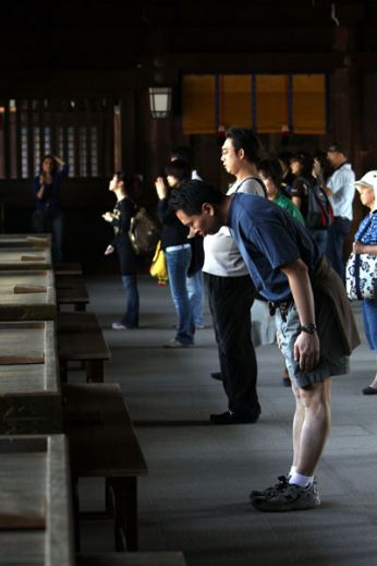 Dunque, cari amici e amiche ![]() spritzini e spritzine, nonostante il santo Webbone mi abbia riammesso con il mio vecchio nickname, continuo qui a parlare del mio ultimo viaggio in Giaaa-ppooo-neeeee aprendo quello che non e’ stato, per nulla, il mio diario di viaggio! ![]() Quindi questo e’ un blog monotematico che pero’ non parla di effe.ai.gi.ei. ![]() ma dei seguenti argomenti... Contratto: 10 Feb. Clima: 12 Feb. Programma: 13,17 Feb. Costi: 19 Feb. Alloggio: 20,23 Feb. 2,6,9 Mar. Indirizzi: 12 Mar. Feste: 14,15 Mar. Denaro: 18 Mar. Fuso orario: 22 Mar. Salute: 28 Mar. 3 Apr. Trasporti: 5,6 Apr. Reportage: 17,19 Giu. 3 Lug. 7 Ago. 2009 30 Gen. 10,26 Feb. 2,7,9,22 Mar. 6,7,6,9,15,16 Apr. 2,3,4,6,12,15 Mag. 2010 PS. chi indovina il mio alter ego bannato, vince una cena jappo! ![]() PPS. nel caso fosse uno spritzino, il premio si riduce a birra/spritz ! (Isaac premiato)PPSS. nel caso fosse una spritzina morosata, il premio si riduce a un drink ! sabato 15 maggio 2010 - ore 14:11 JAPAN-42 Tokyo-8 Tokyo è sede di molti musei. Il Museo Nazionale, situato nel Parco di Ueno, è il più grande museo del Giappone e specializzato in arte giapponese tradizionale, il Museo Nazionale di Arte occidentale ed il Museo Nazionale di Arte Moderna. Sempre nel Parco di Ueno si trovano il Museo Nazionale delle Scienze ed uno zoo pubblico. Altri musei sono il Museo di Arte Nezu a Aoyama, l’Edo-Tokyo Museum nel quartiere di Sumida. Tokyo ha inoltre molti teatri dove vengono rappresentati sia spettacoli contemporanei che le forme tradizionali di teatro giapponese quali No e Kabuki. Tokyo è sede di molti eventi culturali dalle molte sfumature. I più importanti sono il Festival Sanno a Hie Shrine es il Sanja Festival a Asakusa Shrine. Molte città giapponesi hanno eventi simili chiamati matsuri. Il Kanda Matsuri si tiene a Tokyo ogni due anni nel mese di maggio. Il festival si caratterizza per una sfilata di carri decorati e di migliaia di persone. Ogni anno, l’ultimo sabato di luglio, un grande spettacolo pirotecnico si svolge oltre il fiume Sumida attirando oltre 1 milione di spettatori. In primavera, la fioritura dei ciliegi giapponesi, chiamati in lingua giapponese sakura, chiama a raccolta molti abitanti nei vari parchi cittadini come il Parco Ueno, il Parco Inokashira ed il Giardino Nazionale Shinjuku Gyoen, dove fare un picnic sotto gli alberi di ciliegi giapponesi (Sakura). Cimitero cittadino ![]() Hotel a capsule... ![]() Sexy club ![]() Incrocio ![]() Shibuya 109: gnocca planet... ![]() Passaggi pedonali ![]() Sola ![]() Solo ![]() Nippon TV ![]() COMMENTA (0 commenti presenti) - PERMALINK mercoledì 12 maggio 2010 - ore 14:28 JAPAN-41 Tokyo-7 A Tokyo vengono continuamente proposti piani di sviluppo o rinnovamento urbano. I progetti di recupero della terra dal mare vanno avanti da secoli. Il principale è l’area di Odaiba, ora un grande centro di negozi e di divertimenti. Tokyo è una città fatta di numerosi nuclei urbani sviluppatisi intorno ad una stazione ferroviaria. La capitale giapponese è uno sterminato assembramento di quartieri, ognuno avente un proprio centro, che è solitamente la sua maggiore stazione ferroviaria. Ecco perché non si può parlare del "centro di Tokyo" se non da un mero punto di vista geografico: Tokyo ha tanti centri quante sono le sue grandi stazioni, che fungono da luogo d’incontro, di socializzazione, ma anche di shopping e di ristorazione. Orientarsi a Tokyo è impossibile senza avere chiaro il quadro delle sue linee ferroviarie: la capitale ruota infatti attorno alla Yamanote-sen o Yamanote Line, una sorta di circonvallazione ferroviaria che descrive un percorso circolare con 29 stazioni, percorribile in circa un’ora. Ma non è l’unica, ci sono infatti anche molte altre linee: Tokyo ha un sistema di trasporti vastissimo e ci sono più di 7 compagnie che gestiscono i trasporti su rotaia. Elvis d’oriente ![]() Capellone orientale ![]() Leccatrice... ![]() Black monster ![]() Pink lady ![]() Boh... ![]() Passaggio a livello-1 ![]() Passaggio a livello-2 ![]() Le Leffe! ![]() ![]() Il Budda ![]() LEGGI I COMMENTI (2) - PERMALINK giovedì 6 maggio 2010 - ore 15:53 JAPAN-40 Tokyo-6 Dopo la guerra Tokyo venne ricostruita con un sistema ferroviario e metropolitano eccellente, che venne esibito al mondo durante le Olimpiadi del 1964. Gli anni settanta portarono un nuovo sviluppo edilizio, nel 1978 venne costruito un nuovo e controverso aeroporto e la popolazione crebbe fino a circa 11 milioni di abitanti. Negli anni ottanta il prezzo delle proprietà terriere schizzò alle stelle: molte compagnie e persone si arricchirono rapidamente, ma negli anni novanta la bolla economica scoppiò e molte compagnie, banche ed individui fallirono a causa del crollo del prezzo dei terreni. Ne seguì una recessione che rese gli anni novanta la "decade perduta" del Giappone, recessione che ancora oggi continua. Parenti ![]() Offerta ![]() Ringraziamento ![]() Il prete ![]() La sposa ![]() Ema: tavolette su cui i credenti Shintoisti scrivono preghiere o desideri ![]() Leader rock ![]() Batterista ![]() Bassista ![]() Ciaooo ![]() COMMENTA (0 commenti presenti) - PERMALINK martedì 4 maggio 2010 - ore 11:42 JAPAN-39 Tokyo-5 Con la fine dello Shogunato, fu restaurato il potere dellimperatore che trasferì la capitale da Kyoto a Edo, cambiando il nome della città da Edo a Tokyo (capitale orientale). Nel 1868 limperatore si spostò da Kyoto a Tokyo e dal 1869 si stabilì nel castello, dove in precedenza risiedeva lo Shogun. Nel 1923 un terribile terremoto, che uccise oltre 70.000 persone, causò gravi distruzioni in seguito alle quali la città fu riedificata con notevoli trasformazioni. Nella seconda guerra mondiale Tokyo subì gravi bombardamenti, il più intenso fu quello del 10 marzo 1945 che fu devastante quasi quanto le bombe atomiche sganciate su Hiroshima e Nagasaki. Vaste aree della città vennero appiattite. Al giorno d’oggi non rimangono praticamente tracce de