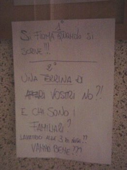 martedì 21 settembre 2004 - ore 22:24 Negrita - Ho imparato a sognare e come è scritto sul bancone della jappelli... ![]() Ho imparato a sognare, che non ero bambino che non ero neanche un' età Quando un giorno di scuola mi durava una vita e il mio mondo finiva un po là Tra quel prete palloso che ci dava da fare e il pallone che andava come fosse a motore C'era chi era incapace a sognare e chi sognava già Ho imparato a sognare e ho iniziato a sperare che chi c'ha avere avrà ho imparato a sognare quando un sogno è un cannone, che se sogni ne ammazzi metà Quando inizi a capire che sei solo e in mutande quando inizi a capire che tutto è più grande C' era chi era incapace a sognare e chi sognava già Tra una botta che prendo e una botta che dò tra un amico che perdo e un amico che avrò che se cado una volta una volta cadrò e da terra, da lì m'alzerò C'è che ormai che ho imparato a sognare non smetterò Ho imparato a sognare, quando inizi a scoprire che ogni sogno ti porta più in là cavalcando aquiloni, oltre muri e confini ho imparato a sognare da là Quando tutte le scuse, per giocare son buone quando tutta la vita è una bella canzone C'era chi era incapace a sognare e chi sognava già Tra una botta che prendo e una botta che dò tra un amico che perdo e un amico che avrò che se cado una volta una volta cadrò e da terra, da lì m'alzerò C'è che ormai che ho imparato a sognare non smetterò... COMMENTA (0 commenti presenti) - PERMALINK domenica 19 settembre 2004 - ore 23:52 ciuuf ke belllo...una ciocca di capelli mi ha appena sfiorato la guancia...ke sensazione strana... bella...nuova...dolce... i miei capelli...nn lasciatemiiii ![]() ![]() LEGGI I COMMENTI (14) - PERMALINK domenica 19 settembre 2004 - ore 18:57 0-1 ottimo. prima partita di campionato. fuori casa. ospiti della favoritissima del campionato di quest'anno. fuori dal campo i tifosi c hanno accolto ridendo, prendendoci in giro e pronnosticando un 4 a 0 secco. hanno tirato in porta 2 volte. hanno finito la partita in 9 (2 espulsioni per proteste). hanno preso 1 gol. hanno riskiato di prenderne altri 5. ma soprattutto... hanno visto come si gioca a calcio. e nn calcio stile patronato...il nostro è calcio da 1° categoria...nn ci credete?!? venite pure, nn ci spaventa nessuno...aspettate un po di mesi e potremmo pure giocare ad okki bendati. ma forse è ancora presto per esaltarsi...c'è tutto un campionato... LEGGI I COMMENTI (2) - PERMALINK domenica 19 settembre 2004 - ore 12:45 Cos'è la normalità?!? bene...siete stanchi di ste domande...tranquilli...fra un po finiranno ![]() cmq sia, in questa settimana la domanda è nata spontanea, è bastata una chiacchierata fra me e squalo83 e oplà! Ora, vediamo se siamo normali o meno... ![]() squalo83: la normalità? nn esisteeeeee!!!!! Temporale: non eccellere in nulla. Rimanere passivo a lasciare che la vita ti scorra attraverso. calimero: una questione di percentuali SixtyNine: ...L'Osservazione Delle Norme, Delle Regole... (imposte pero' da altri) Quindi Tutti Noi Siamo Normali O Agiamo Normalmente Solo Quando Viviamo Nel "Nostro Mondo"... ![]() Layne: equivalenti su litri. EMIGLIO: Non lo so è il solito, ciò che segue regole e leggi prestabilite... alex1980PD: Sono incapace di definire cosa sia la normalità, mi spiace ![]() millebirre: una noia mortale!!! ![]() carlo77: spararsi na sega mikyyy: Quello che non voglio.. KillerCoke: un'ipotesi DemoMan: La normalità non esiste!! Pisolina: ecco... è domenica! ora lo so!!! cmeq la normalità è solo un concetto che non esiste nella realtà. baywatch: un numero Zives: ormai la normalità è essere anormali valevally: Mi creda, prof, questa la so. L'ho ripassata stamattina. Ce l'ho sulla punta della lingua, ma non mi vene in mente... un aiutino?? Cmq, x citare La Spada Nella Roccia... "Oh, nono, non la tratto questa roba!" kiaraa: cos'è la pazzia?!?!?!?!??! vanesia: ogni persona ha una sua idea di cosa sia 'normale'motivo per cui le normalità sono miliardi e quindi una normalità vera e propria forse nn esiste MaMba: svegliarsi senza un martello pneumatico che ti batte in faccia.sta mattina sono Anormale infatti spleen80: i simpson Kattiveria: quelli che spaccano i coglioni al prossimo con questi sondaggi da deficienti disordine: una malattia mentale ale79PD: è tutto ciò che rientra nella nostra razionalità, una cosa relativa quindi che è strettamente individuale e può variare a seconda del contesto in cui il singolo individuo si trova. Fra85: non esiste SySt3m: Un insieme di atti o pensieri o modi di fare "scelti" come standard dalla società. Qualsiasi cosa che non rispecchi questi standard è definita anormale.. Spiderr: la normalità...è quella cosa che giorno dopo giorno ti logora e ti fa andar fuori di testa... andynight: non io... ![]() ![]() ![]() tippi: a saperlo!!!! Insidia: credo mi sia sfuggito il significato della parola normalità ![]() nouse86: tutto quello che non stà nel mio cervello? JKD: quello ke non sono io viorika: la normalità è una macchia bianca in un foglio nero majade: la routine chobin: Non c'è.Non esiste affattissimo. alvise83: nonnoale: bella domanda... ma perchè propio a me? Non sono in vena psicologico-filosofica oggi... posso solo aggiungere una domanda alla tua, c'è differenza tra normalità e banalità? se si, quale? se no, perchè? ![]() crazyraver: una convenzione DRAGO: Un concetto di comodo per chi ha bisogno di non sentirsi speciale; un artificio creato dalla società per inserirci entro certi canoni considerati socialmente accettabili; è una strana forma di pazzia collettiva. Il principio di causa ed effetto è la normalità. Ma è anche normale che ad un effetto corrispondano diverse possibili cause. Così come diverse cause possono portare allo stesso effetto. E allora se è così tutto è normale, da un certo punto di vista. Ma da un altro non lo è. Il vero quesito che mi pongo è: qual è il punto di vista normale? E quale quello anomalo? ![]() a-len: 
